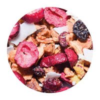 Gefriergetrocknete Kiwi- und Sauerkirschstücke unterstrichen von saftigen Cranberryscheiben und knackigen Kokoschips für ein tropisches Geschmackserlebnis. Dieser Tee ist eine schöne Möglichkeit positive Wünsche zu überbringen und zugleich eine kleine Auszeit des Genießens zu schenken. Säurearm – für einen schonenden Genuss. ☕️
