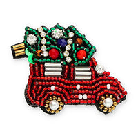 Brosche Auto mit Weihnachtsbaum Perlen 7cm