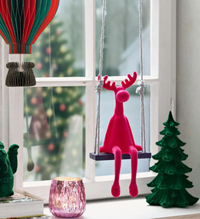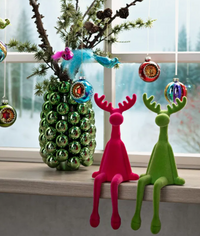 Diese bunten Bäume, Hirsche und Nikoläuse bestehen aus Kunststoff und sind rundum beflockt.