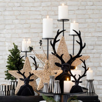 Diese bunten Bäume, Hirsche und Nikoläuse bestehen aus Kunststoff und sind rundum beflockt.