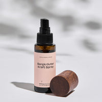 Sprüh das Bergkräuter-Kraft Raumspray aus etwa 30 cm Entfernung gleichmäßig auf Kissen, Bettwäsche oder in den Raum, um die belebende Wirkung der Kräuter zu genießen und eine frische, angenehme Atmosphäre zu schaffen