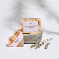 Die handgemachte Körper- und Handseife ist angereichert mit ätherischem Lavendelöl und echten Lavendelblüten. Sie reinigt sanft und verwöhnt die Haut mit einem beruhigenden Duft, der Körper und Geist entspannt. Perfekt für deine tägliche Pflege.