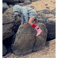 Was in England lange Trend ist und zur Tagesordnung gehört, fehlt hier bei uns leider komplett. Die gute alte Stiefelsocke. Die Socken reichen bis unters Knie und wärmen die Beine. Sie gucken oben aus dem Kinderstiefeln raus und sind für diese Jahreszeit der ideale Begleiter an nassen und kalten Tagen. Hergestellt werden sie aus Bio Baumwolle.